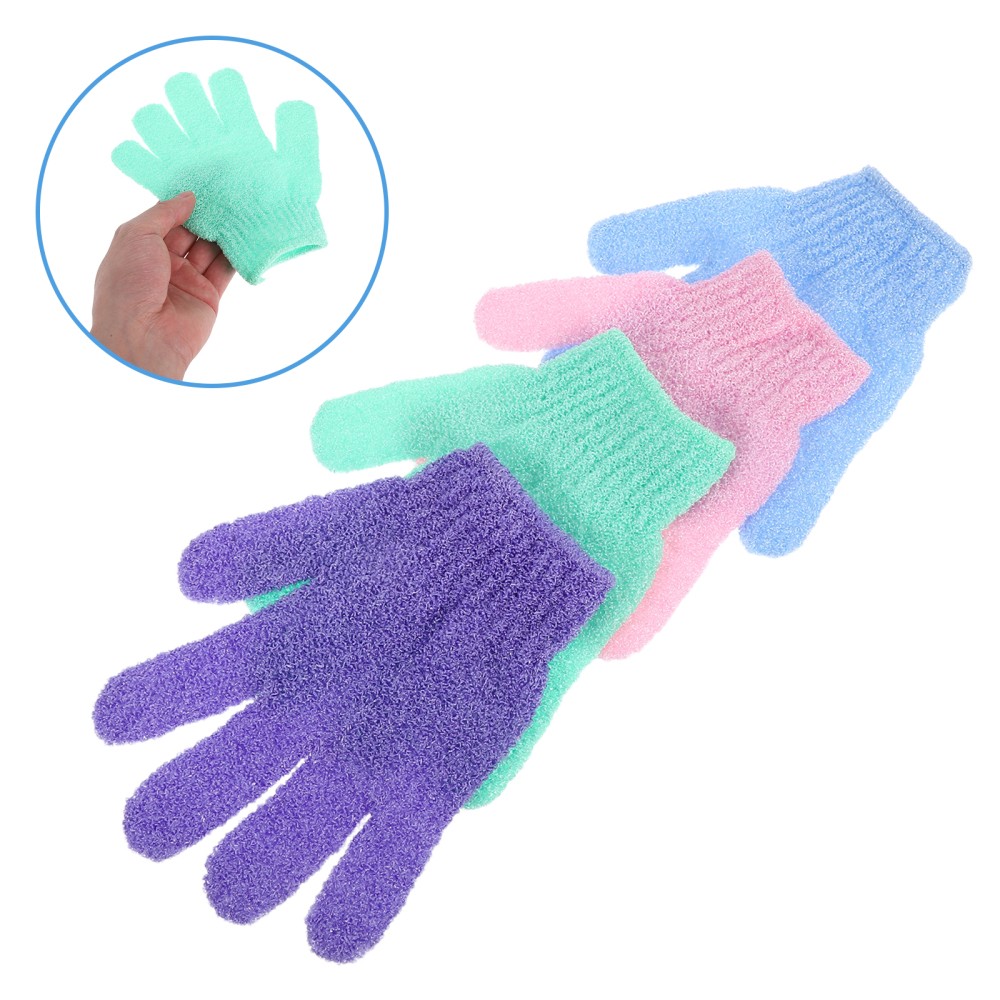 4 Pairs Five Finger Bath Gloves Work Miss Body Scrubber Exfoliating Bathing